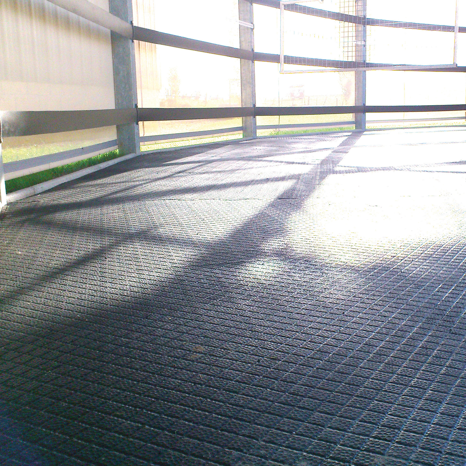 Designed specifically for horsewalkers, the Belmondo Horsewalker rubber mat is soft and shock absorbing whilst providing the horse with a stable and secure walking surface. It’s important that the hoof can turn easily on the rubber flooring without being stopped abruptly to help protect tendons and joints. Â The rhombic profile on the surface provides improved grip in wet conditions and is easy to clean. The weather- and UV-resistant top coat makes the Horsewalker rubber mats particularly robust and durable in Australian conditions, especially when used outdoors.